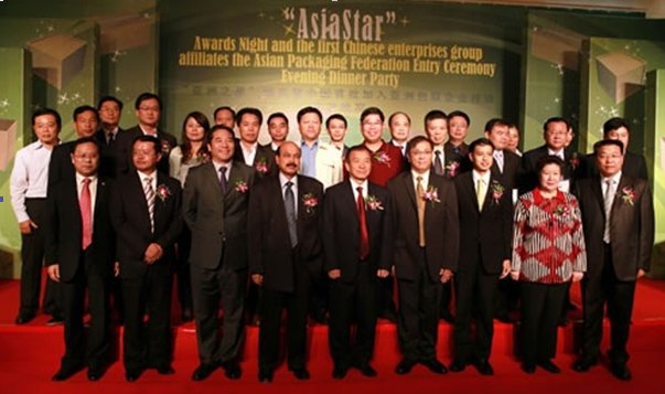 2009年10月28日晚,上海興榮豪廷大酒店皇家宴會廳燈火輝煌、星光燦爛,2009"亞洲之星"頒獎暨授牌文藝晚宴在這里隆重舉行。我公司作為中國首批加入亞洲包裝聯(lián)合會企業(yè)被光榮授予牌匾。參加此次活動促進(jìn)了我公司與各國包裝行業(yè)的合作與交流,爭取了向先進(jìn)國家學(xué)習(xí)的機(jī)會。與會各國、各地區(qū)政府部門、包裝組織及相關(guān)行業(yè)機(jī)構(gòu)、包裝企業(yè)及其關(guān)聯(lián)企業(yè)紛紛表示要為共同發(fā)展,不斷提高包裝行業(yè)的整體水平,乃至為各國、亞太地區(qū)及全球的經(jīng)濟(jì)發(fā)展作出貢獻(xiàn)。
