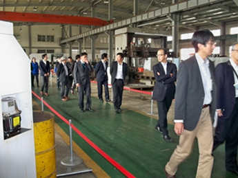 日本鋼桶工業協會(JSDA)的會員,共17家,其中鋼桶專業制造廠家11家,鋼制提桶3家,同時即生產鋼桶又生產鋼制提桶的3家。他們涵蓋了日本鋼桶行業的整個市場。本次交流團是由日本鋼桶行業非常具影響力的11家桶廠組成。目前日本200L鋼桶年產量約達1400萬只,提桶年產量約2000萬只。JSDA的會員公司產量涵蓋了日本鋼桶市場百分之百的份額。 我公司作為中國制桶設備行業龍頭企業以及長期以來堅持不懈的科技創新精神,尤其是近期設計完成的滾壓焊縫機組、及為德國毛瑟提供的高科技全自動生產線等引起了他們的極大關注。