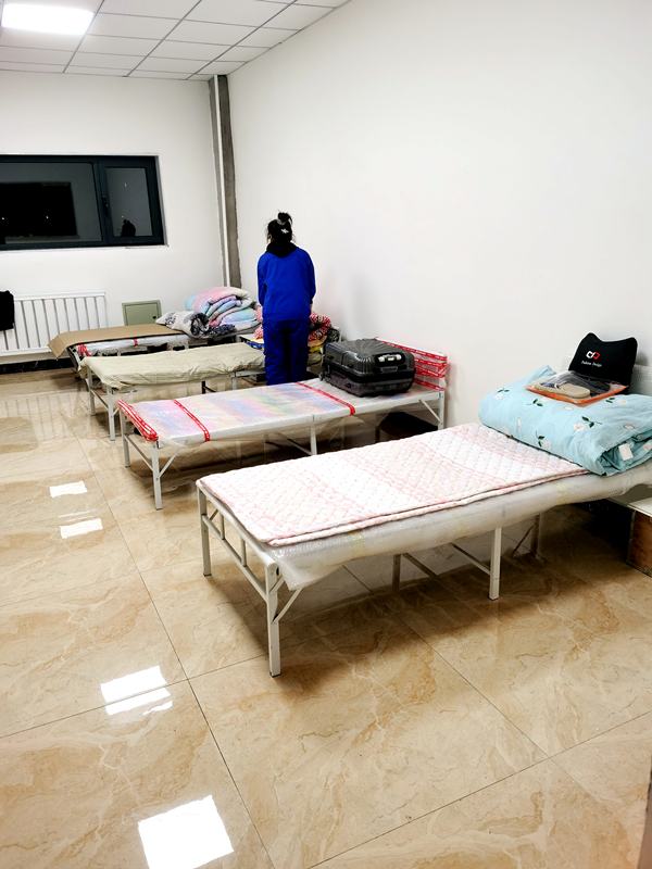 疫情當(dāng)下,我們廠區(qū)內(nèi)原有的宿舍數(shù)量有限,面對突如襲來的疫情,我們快速反饋,在辦公室和會議室設(shè)置臨時住宿地點,北方制桶員工提前準(zhǔn)備好了行李及必須生活用品,毅然決然選擇了駐廠奮戰(zhàn),有的員工甚至無法顧及家中的幼兒及年邁的老人,克服了種種困難,努力完成手中的任務(wù),以客戶需求為使命,奮力追趕工期。